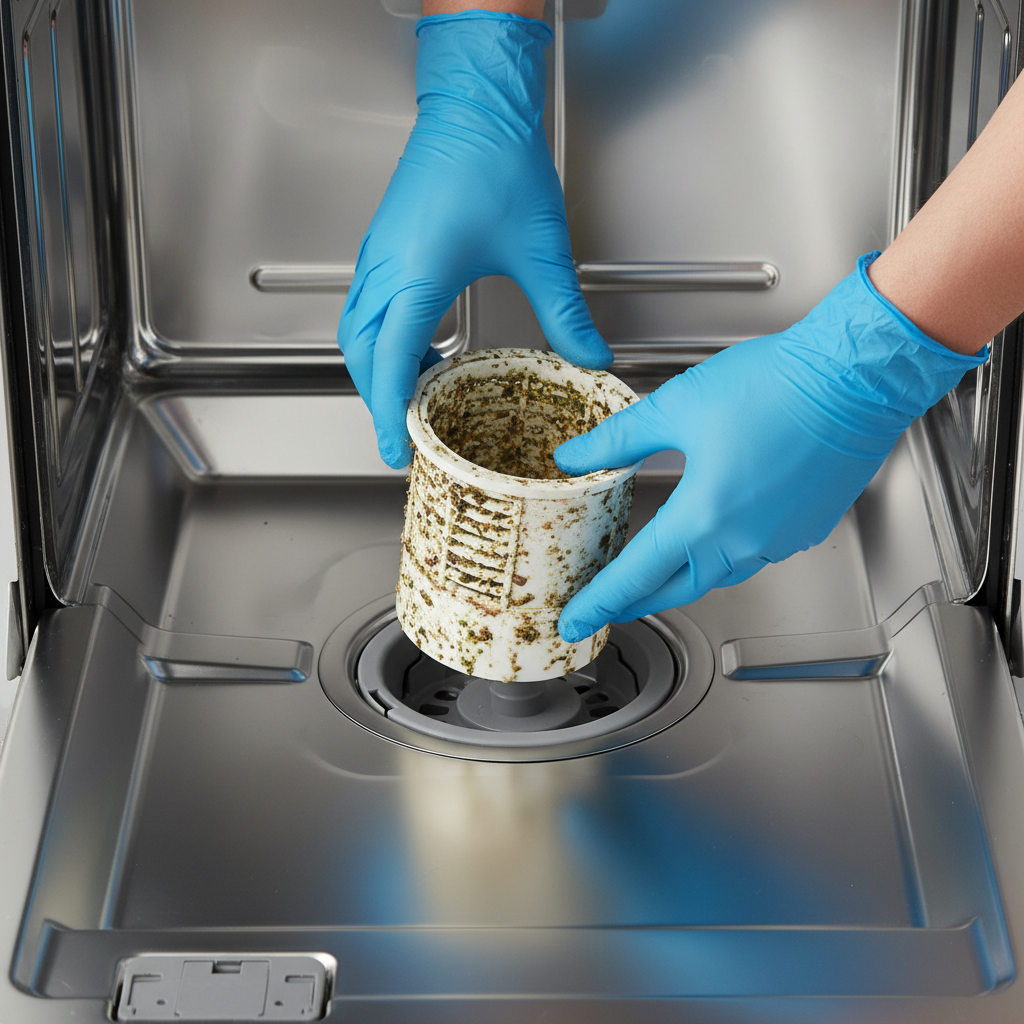 • Remove the Filter: Twist or lift the filter according to your dishwasher’s manual. Some models have multiple filter components.