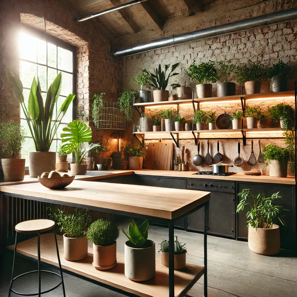 This infusion of organic materials transforms the kitchen into a dynamic space that feels alive and welcoming. Imagine the soothing effect of greenery against a backdrop of concrete walls and metal fixtures, providing a perfect balance of urban and natural.