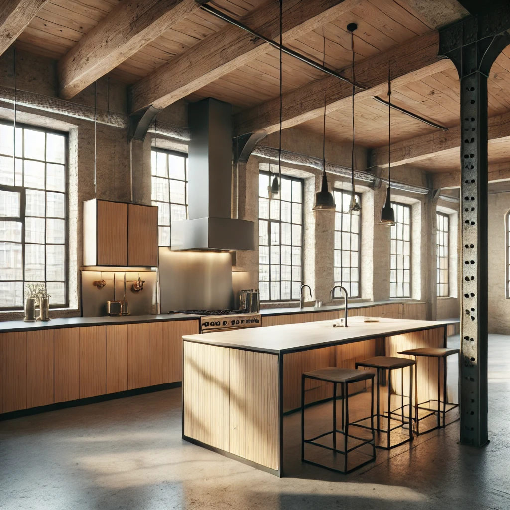 Key Elements of an Industrial Loft Kitchen with Light Wood