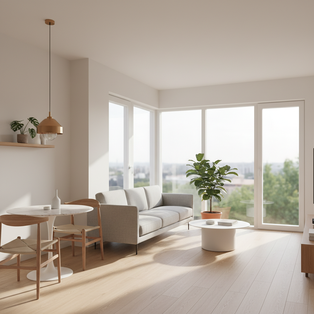Focus on light colors for walls and furniture, use mirrors strategically, opt for furniture with slender profiles and exposed legs, and ensure good lighting (natural and artificial). An open-plan layout or clear zoning with rugs can also help create a sense of expansiveness.