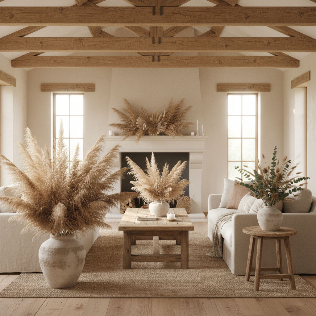 - Tall Floor Vases: Ideal for large, impactful statements with pampas grass in entryways or living rooms.