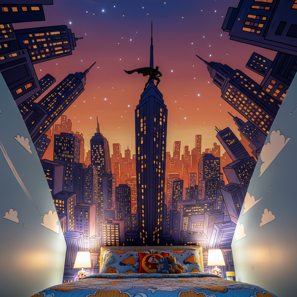 For renters or frequent redecorators, large peel-and-stick murals or decals of comic scenes, cityscapes, or superhero symbols are ideal. They’re easy to install, removable, and come in a wide variety of styles and scales.