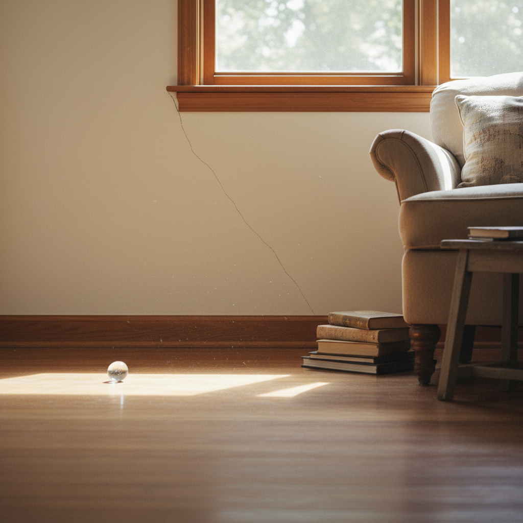 - Uneven or Sagging Floors: This is one of the most common signs. You might feel a slope when walking across a room, or notice marbles rolling to one side.